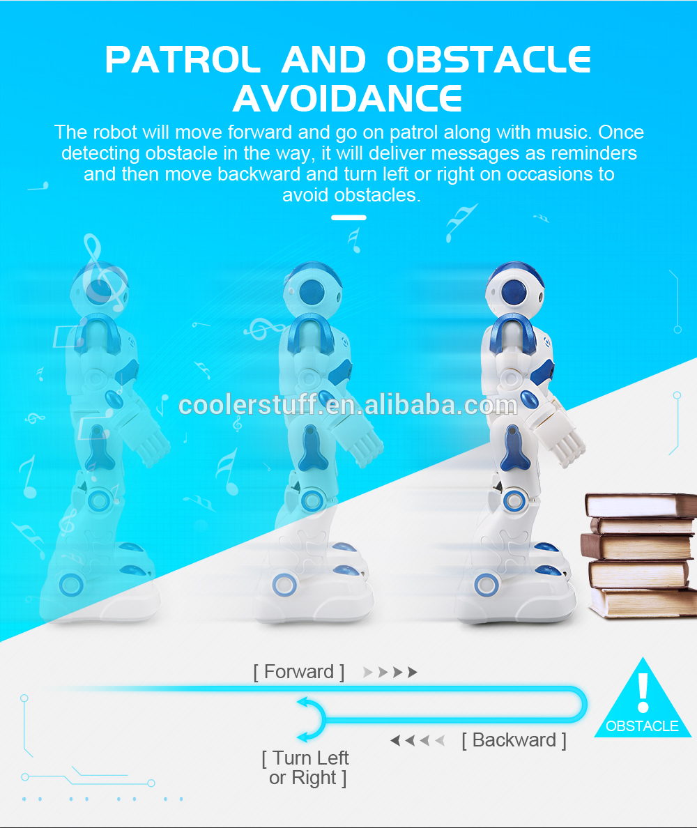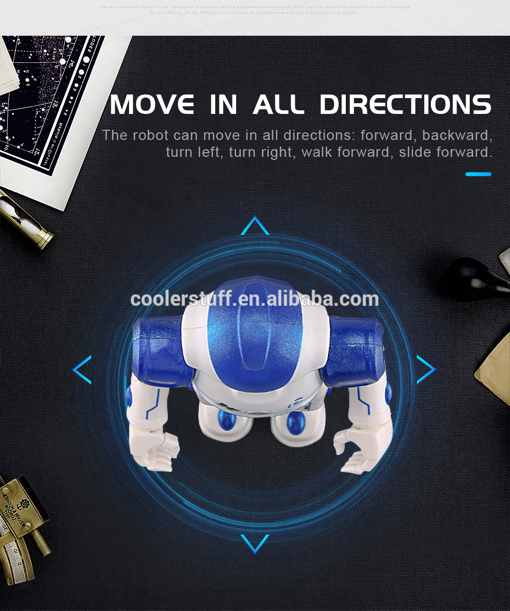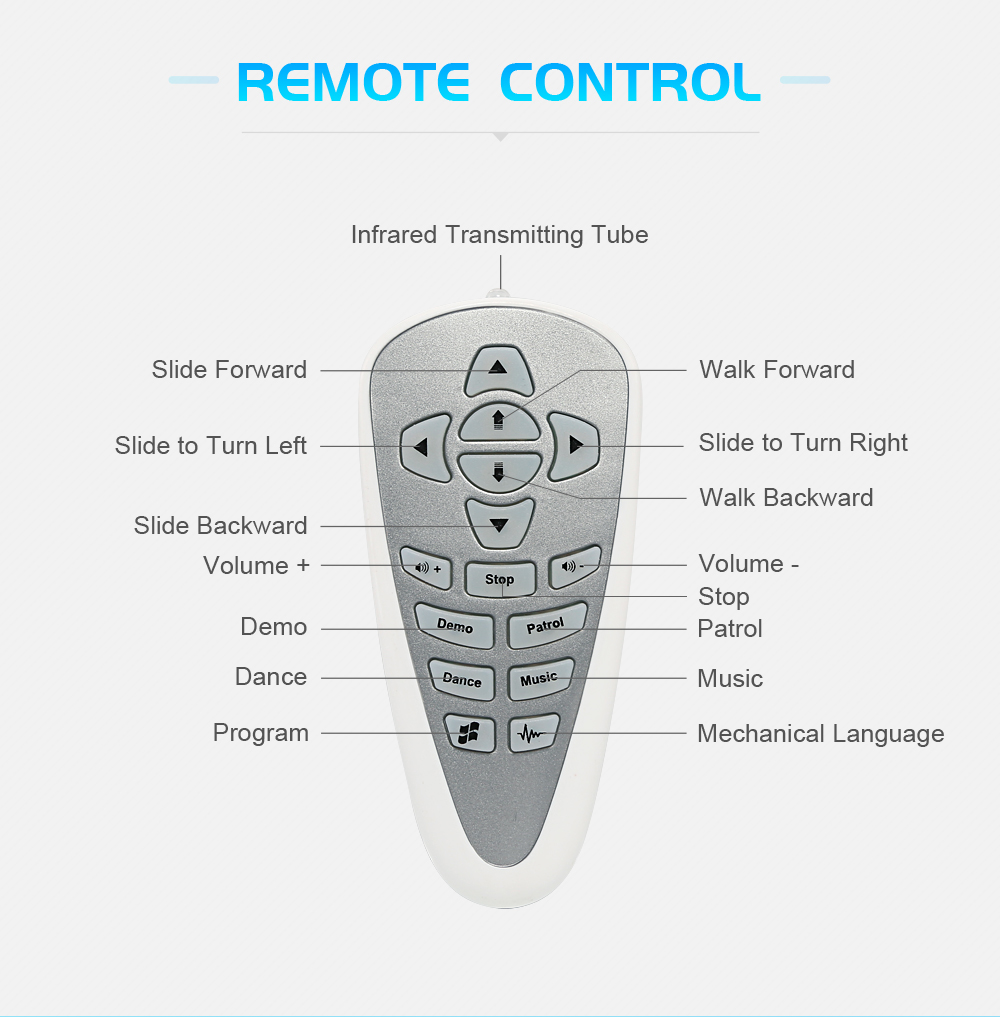 forward, backward, turn left, turn right, slide&walk, song, dance, programming, LED Light