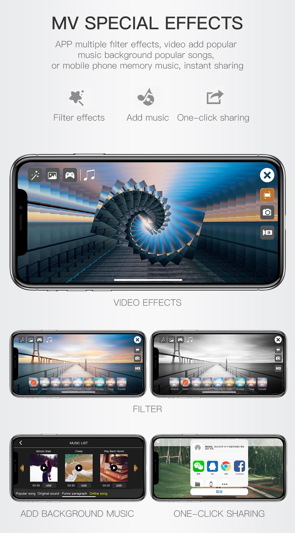 up/down, forward/backward, turn left/right,anto return,GPS positioning,follow,fixed point surround,MV function,Gesture recognition,Trajectory flight