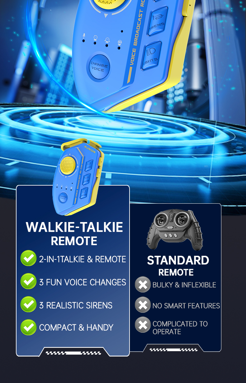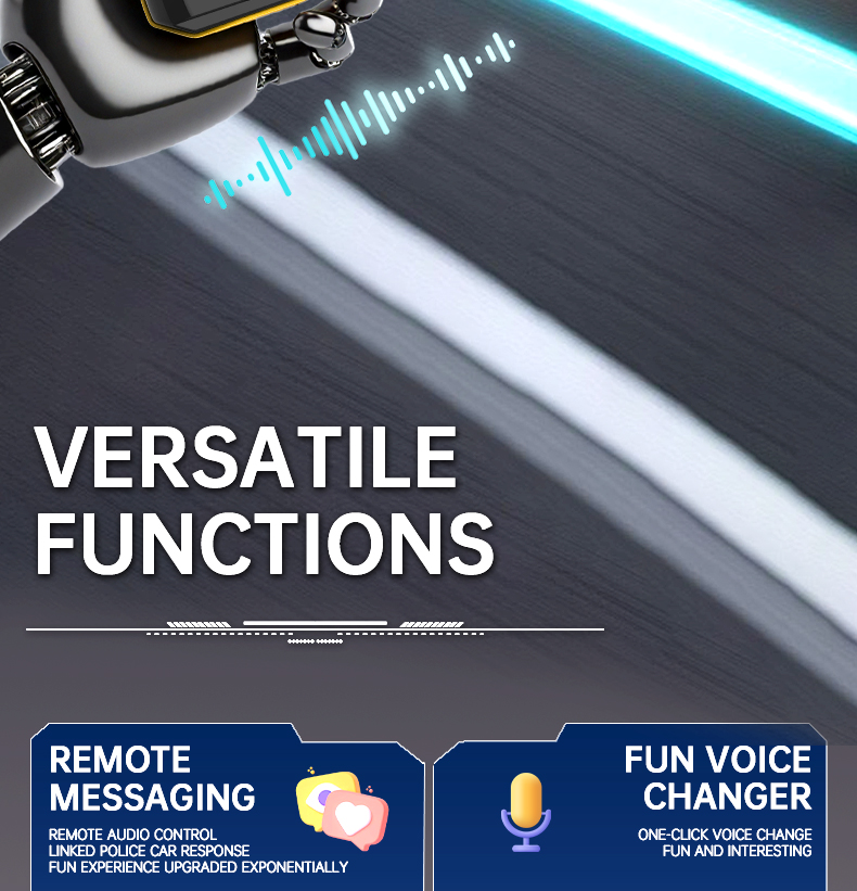 forward/backward,turn left/right,intercom key, recording key, indicator light, tone change key, volume+/-,horn sound, siren sound, warning light
