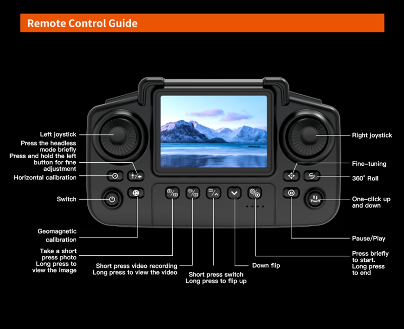 up,down,forward,backward,turn left/right,auto take off/land,auto return,