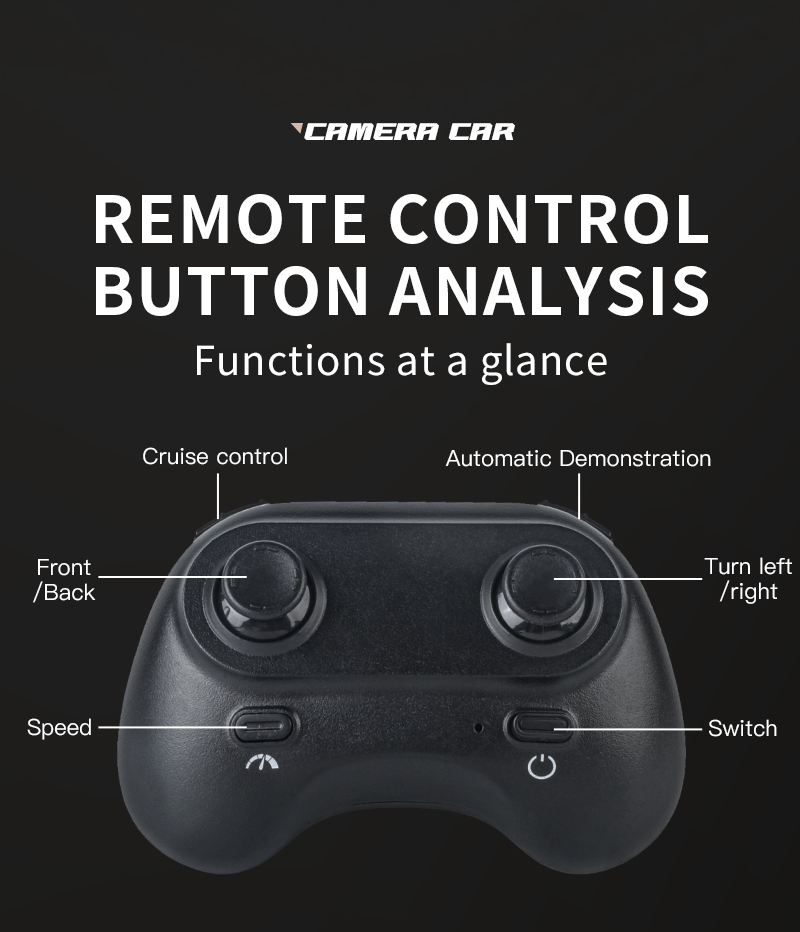 forward/backward, left/right turn, high and low speed, front and rear lights and bottom lights, automatic demonstration, cruise control, gravity sensing, photography, video recording, gesture photography, gesture video recording