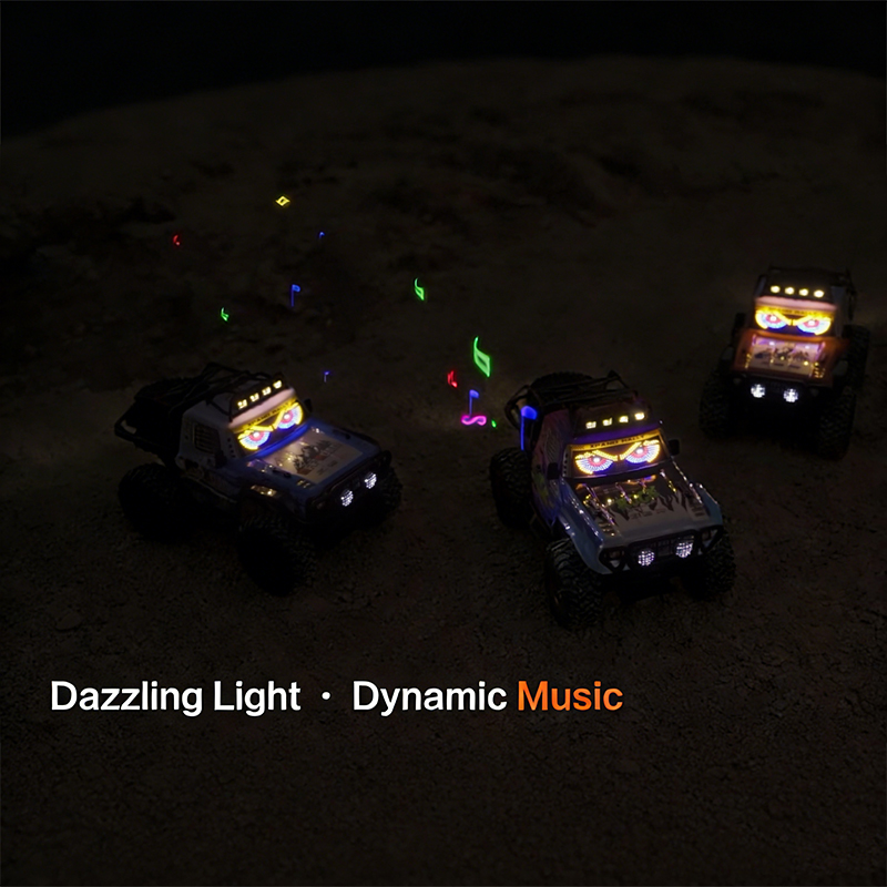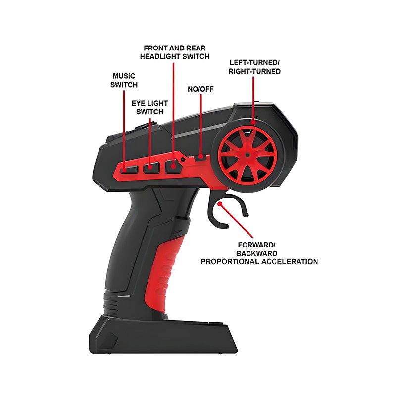 forward/backward, left turn/left turn, big eye lighting, dynamic music, seven lighting change modes, simulated rearview mirror with front lights and rear taillights